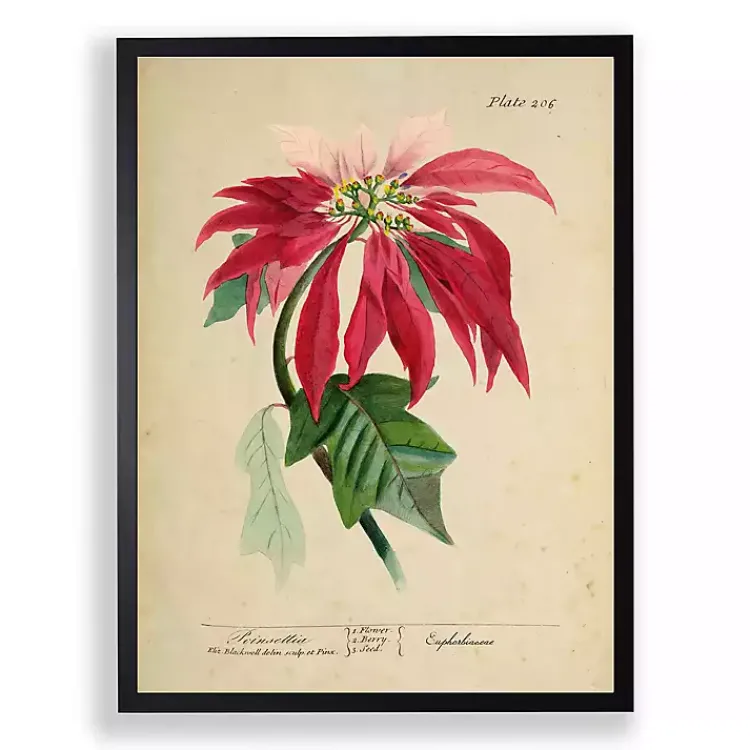 Bring vintage flair to your holiday wall display with the Antique Christmas Poinsettia Framed Art Print. This detailed botanical art will look lovely with a rustic or modern Christmas décor style.
