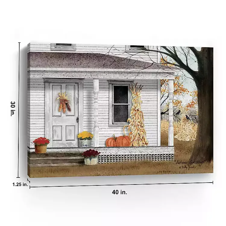 Complete with mums and pumpkins on display, this Autumn Greetings Canvas Art Print captures a picturesque fall porch. It will add the perfect fall charm to your space!