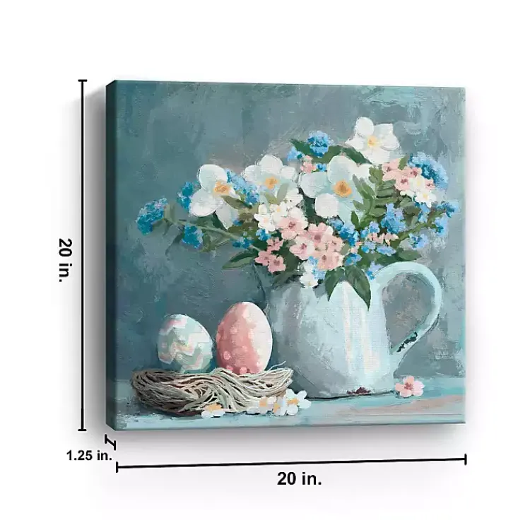 Decorate for spring with our Easter Eggs and Floral Jug Canvas Art Print! The Easter eggs bring a subtle festive Easter touch that will last the whole season!