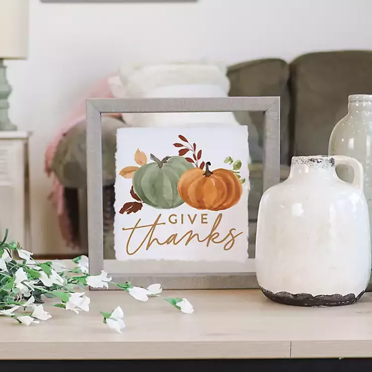 This Give Thanks Pumpkin Duo Framed Wall Plaque will update your wall decor for autumn. Its sweet phrase puts the perfect Thanksgiving touch on any space!