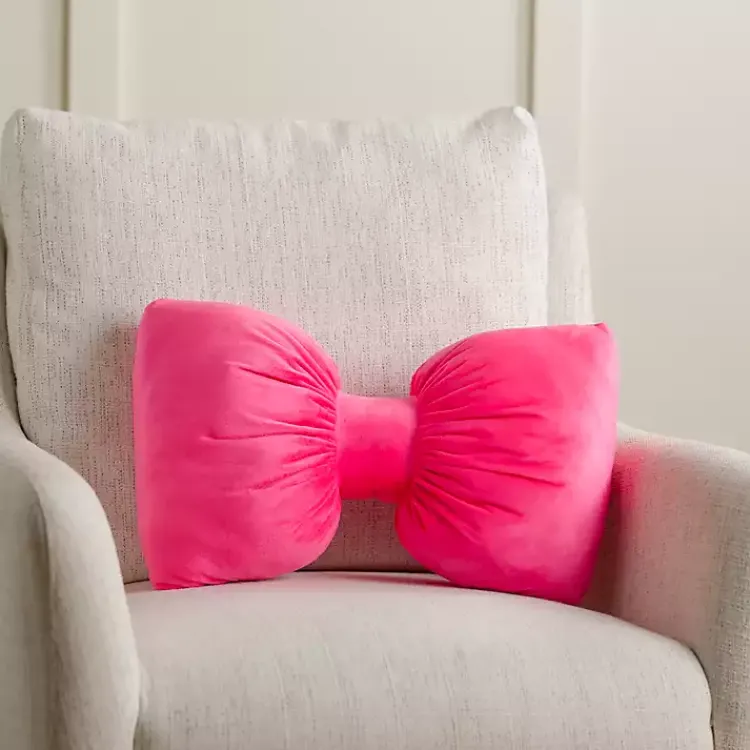Wrap your Christmas decorations up with this Pink Holiday Bow Shaped Pillow. Its bright, whimsical look will put a festive touch of your sofa, chair, or bed!
