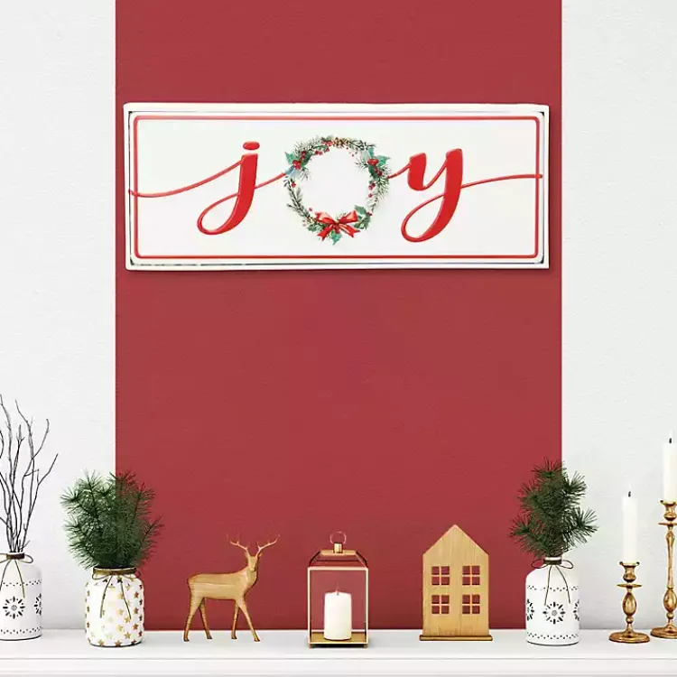 This Joy Christmas Wreath Metal Wall Sign will spread the feeling of cheer and winter elegance throughout your home! Style it above a mantel or add it to your gallery wall display.