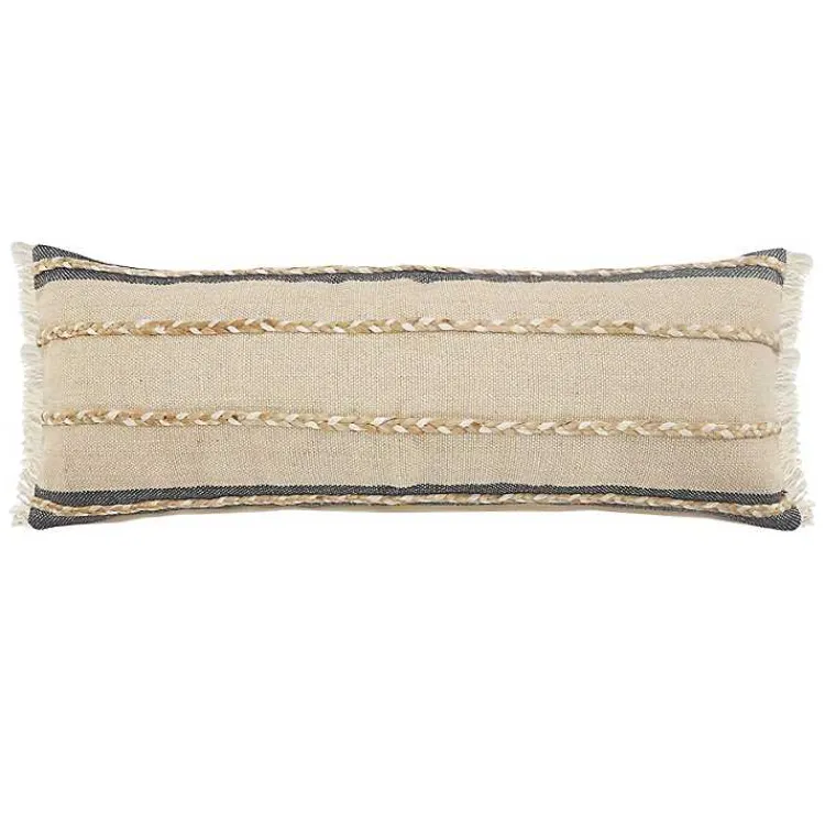 Add some cushion to your coastal or contemporary sofa! Our Natural Jute Braided Stripe Lumbar Pillow features a textured pattern and soft, earthy tones that you’ll love.