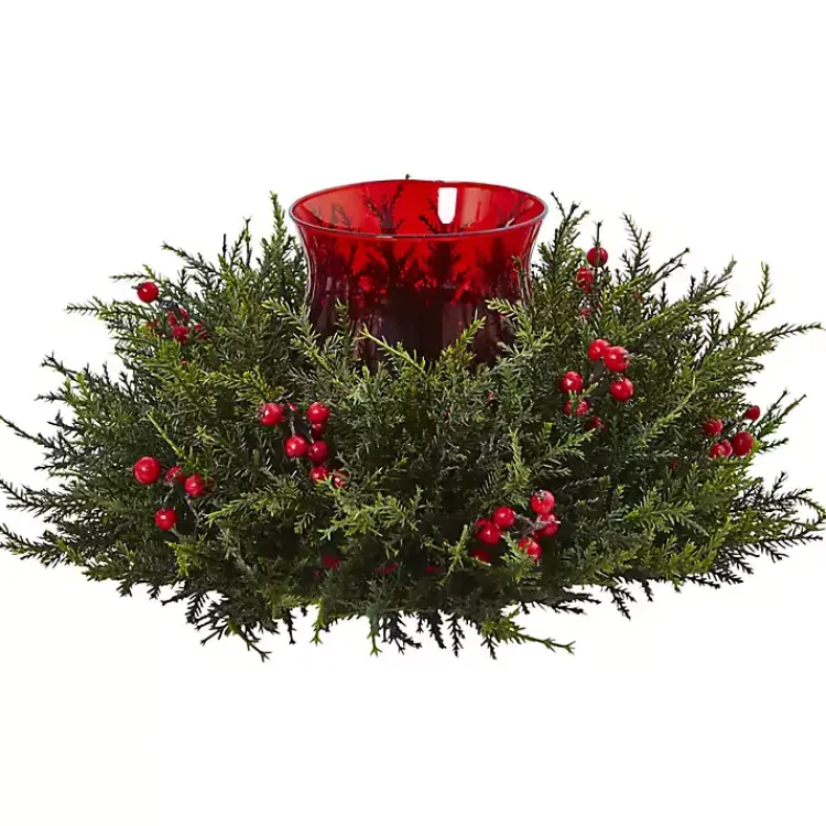 Complete your holiday tablescape with a touch of greenery and a festive glow! The Cedar and Berry Candle Ring Centerpiece boasts a lush, realistic design that will look lovely year after year.