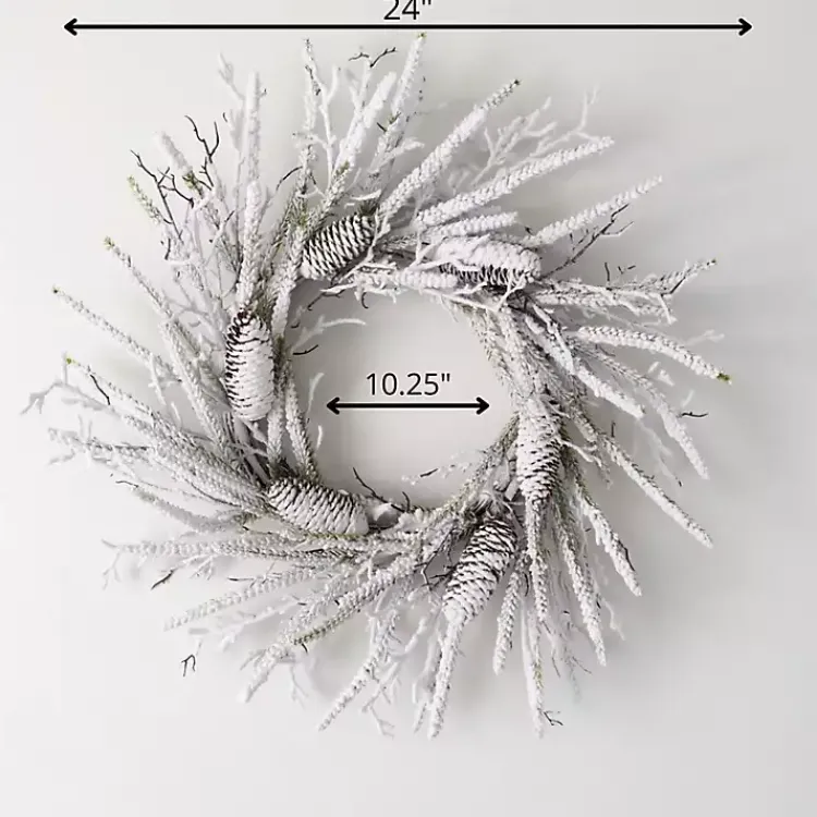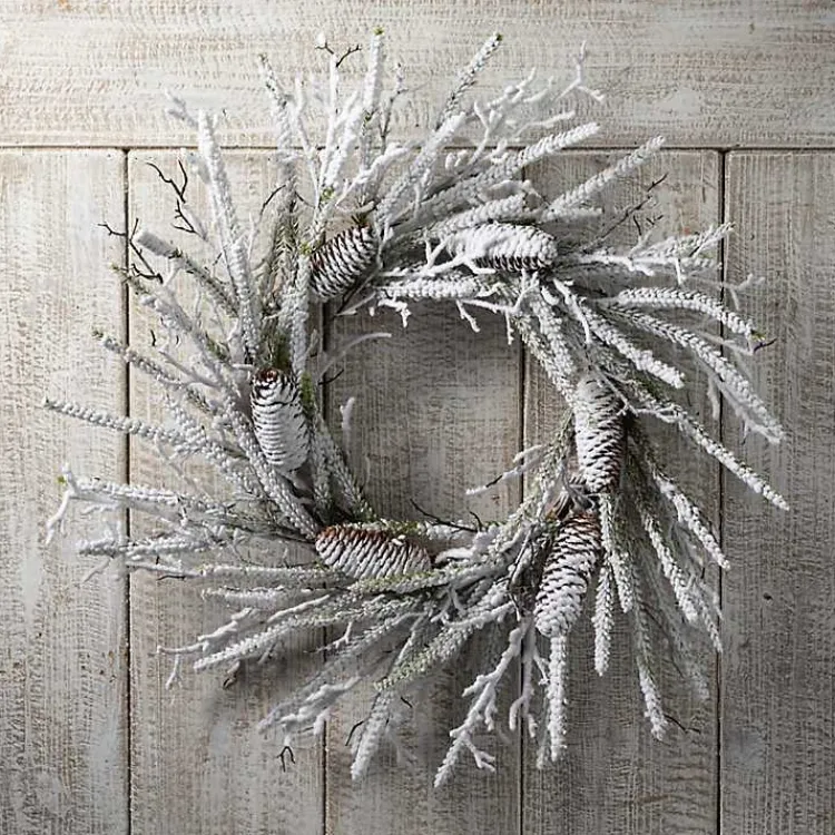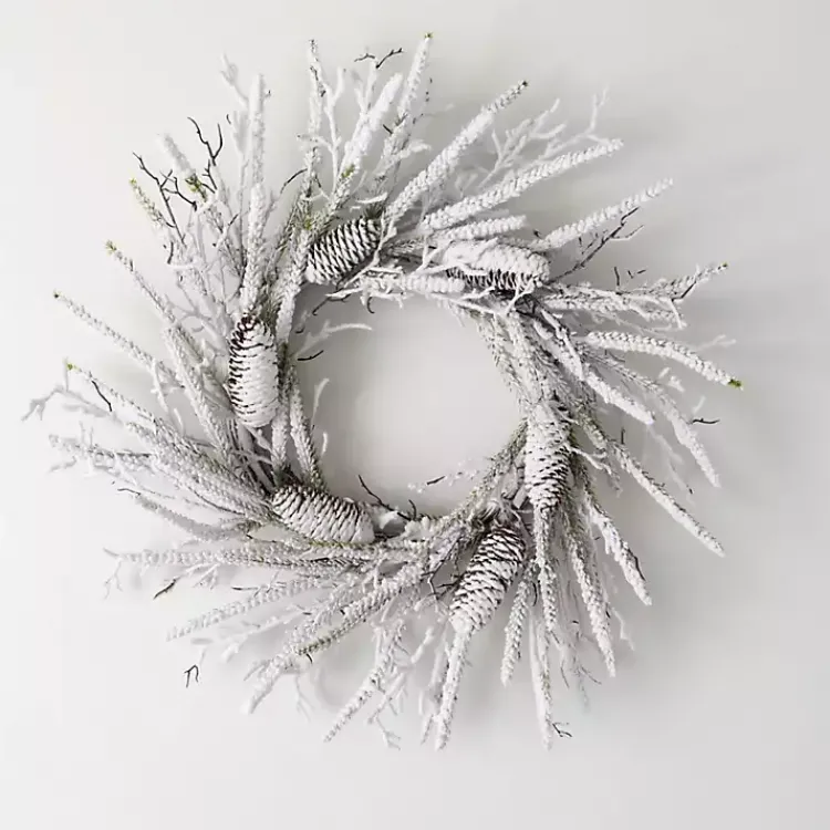 This Flocked Twig and Pinecone Christmas Wreath brings a touch of wintery wonder to any space! The dusting of faux snow gives it an enchanting look, perfect for a door or mantel display.