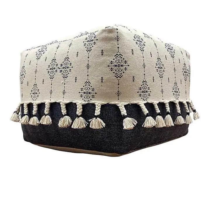 This Navy and Ivory Scandinavian Motif Pouf is a unique accent piece that is both stylish and versatile. Use it as an ottoman, extra seat, or simply a chic embellishment!
