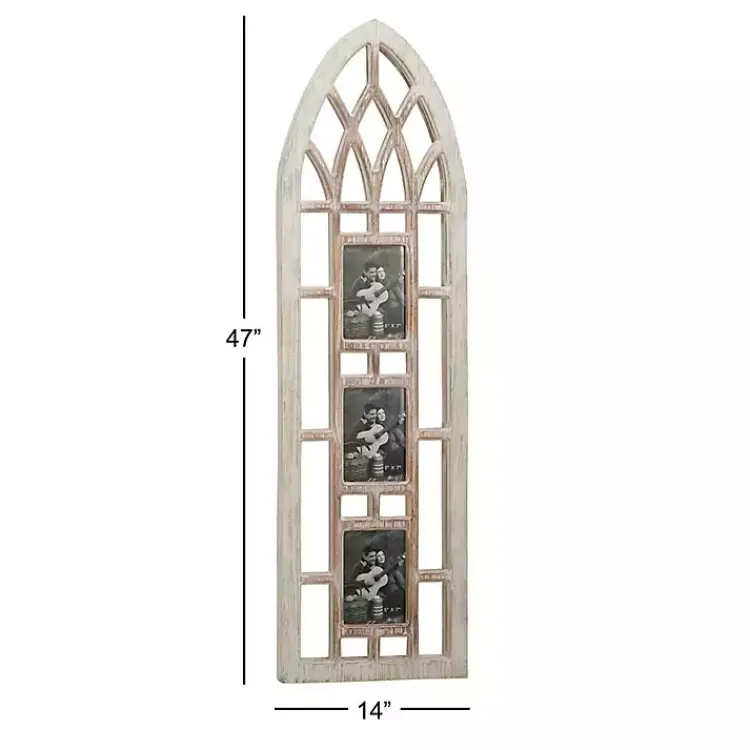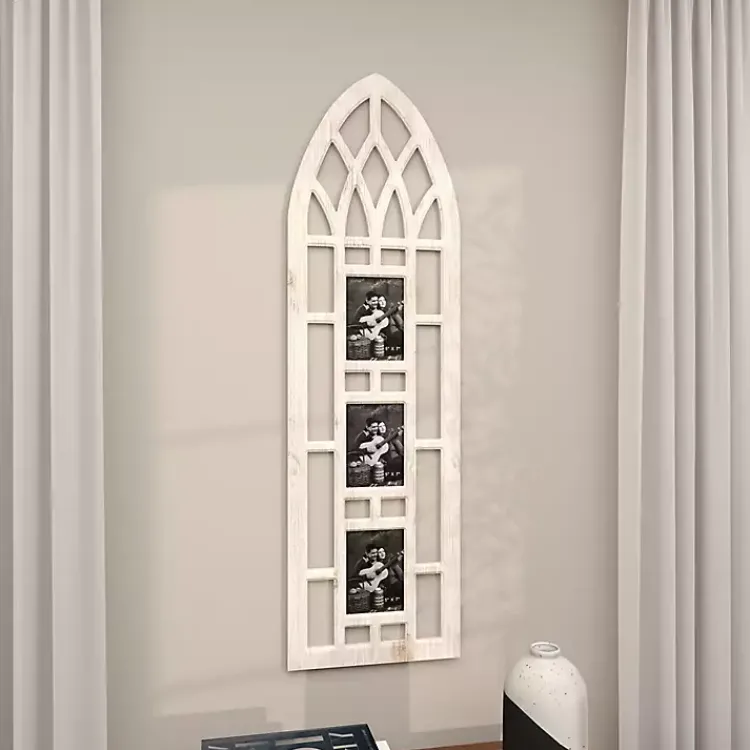 Display your best moments or favorite people in this Whitewash Window Arch 3-Opening Collage Frame! The antique style is perfect for adding dimension to your rustic walls.