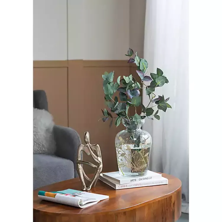 Give any space or shelf a modern touch with this Gold Metal Pondering Figure I Sculpture. Its unique design and gold finish is perfect for accenting a side table or bookshelf with a contemporary look.