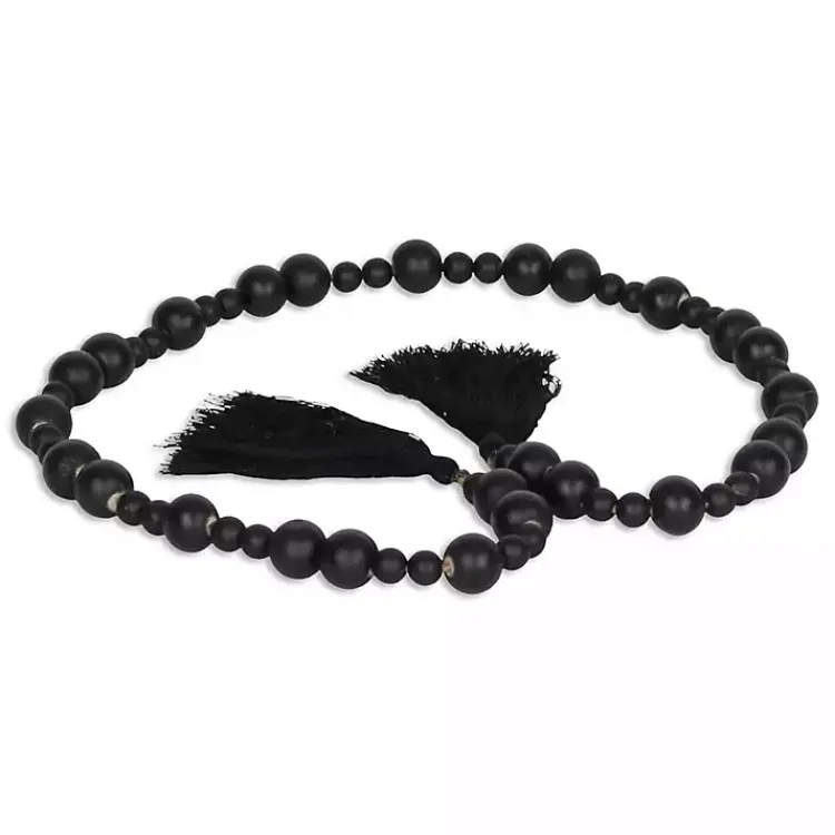 Bring an eye-catching accent to your space with this Black Round Wood Bead Tassel Garland! With its all black finish and round beads, this garland will add a pop of style to any surface!