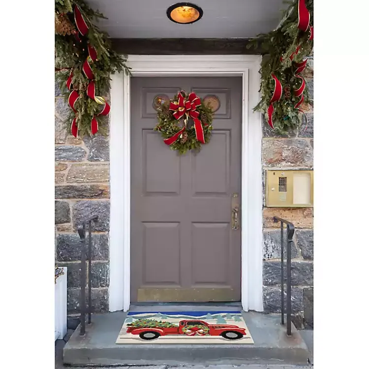 Give visitors a warm holiday greeting with this Snowy Red Truck Doormat. Its charming design will add the perfect Christmas embellishment to your porch!