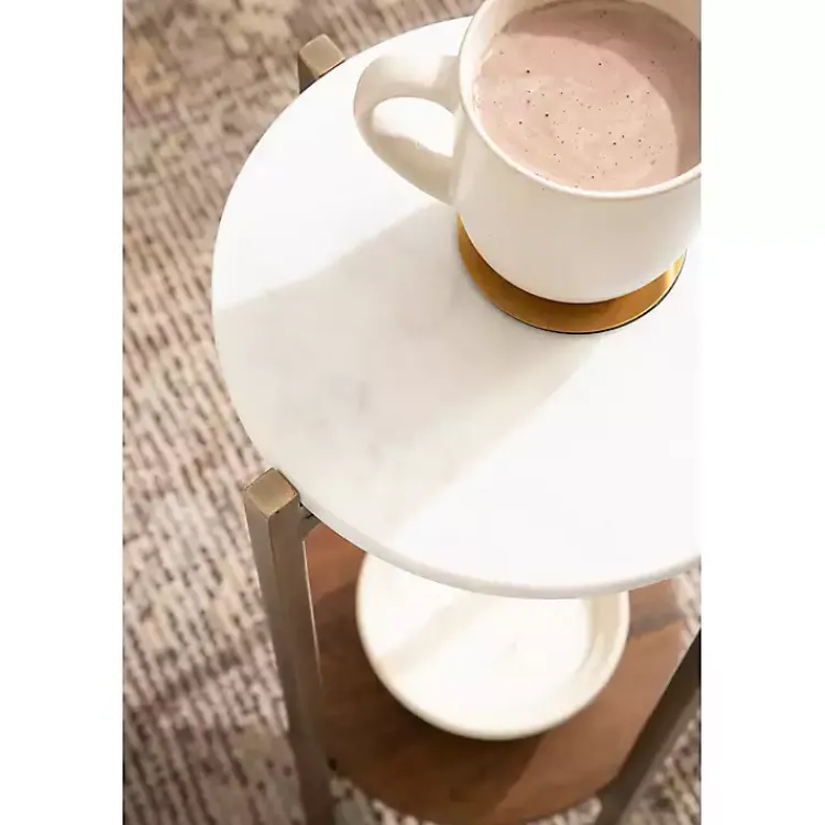 Our White Marble Walnut Accent Table is a beautiful combination of fashion and function to suit your needs. This side table is made by skilled artisans, making each piece absolutely one-of-a-kind!