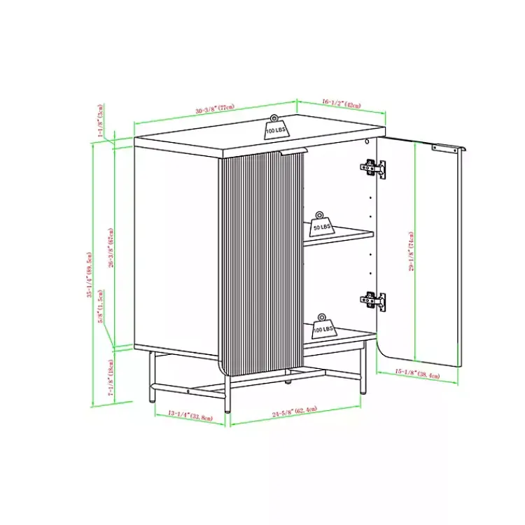 - Cabinet measures 30.4L x 16.5W x 35.3H in.