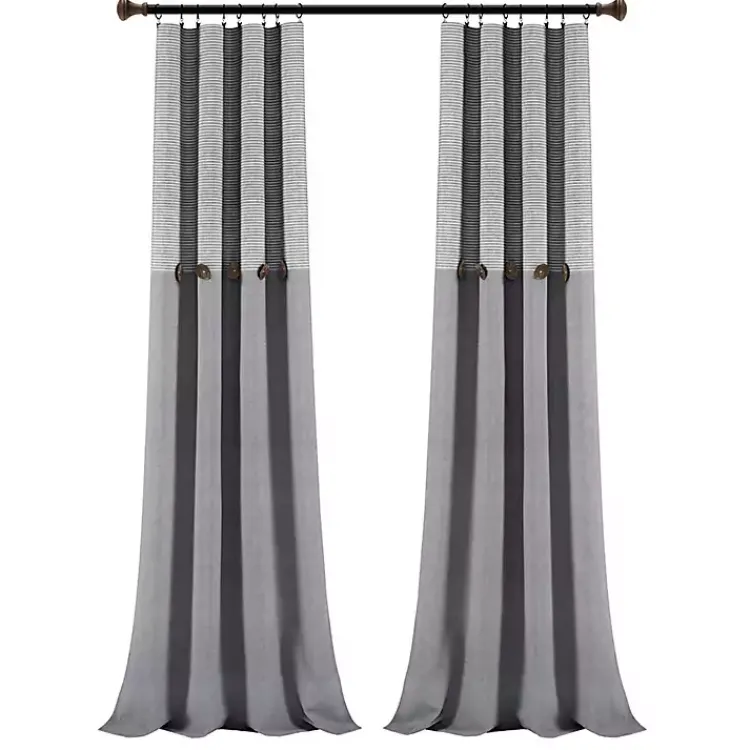 Bring charming farmhouse style to your space with our Gray Button and Stripe Curtain Panel Set. You’ll love how the button accents bring texture to any space!
