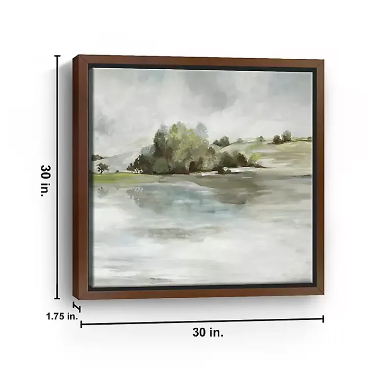 - Wrapped in a walnut brown wood floating frame