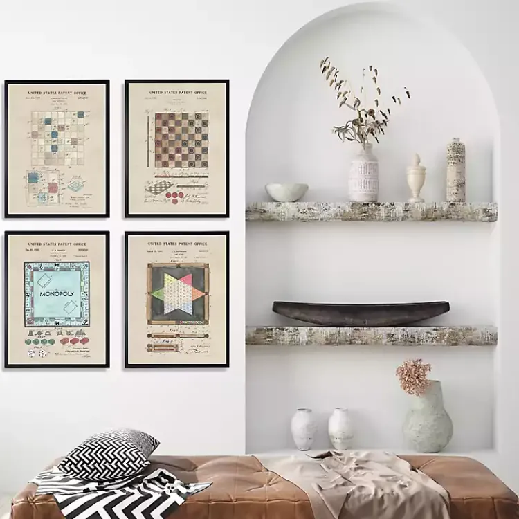 Play around with this set of Game Boards Patents Framed Art Prints. You’ll love the original illustrated diagrams of four game boards framed in black.