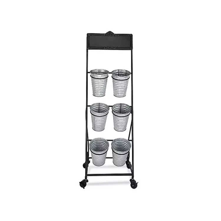 You’ll be able to fit in all the plants you love with our Metal Rolling Planter with Galvanized Buckets. The six removable metal buckets and a chalkboard top complete this piece!