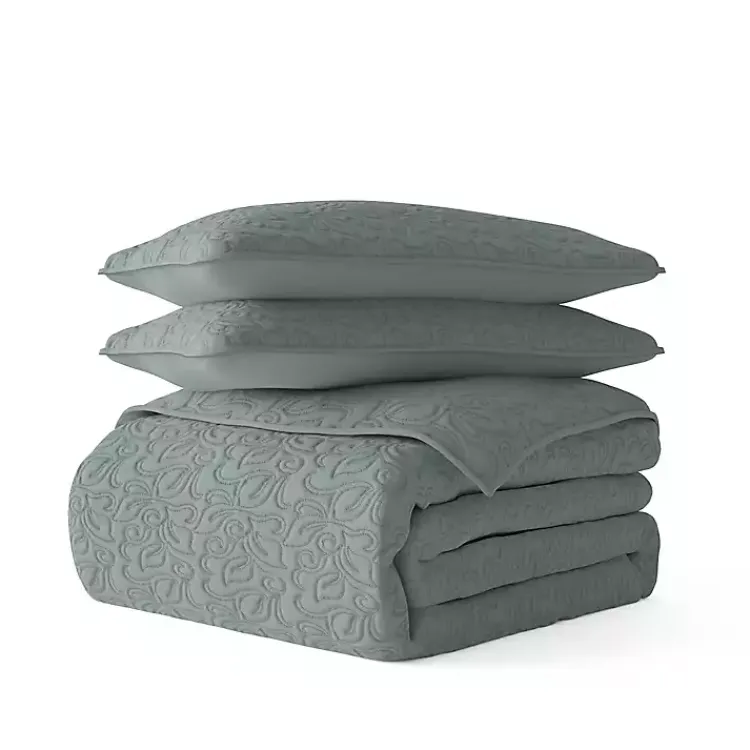 Kirklands Home Quilts|Stitched Floral 2-pc. Twin Quilt Set Green