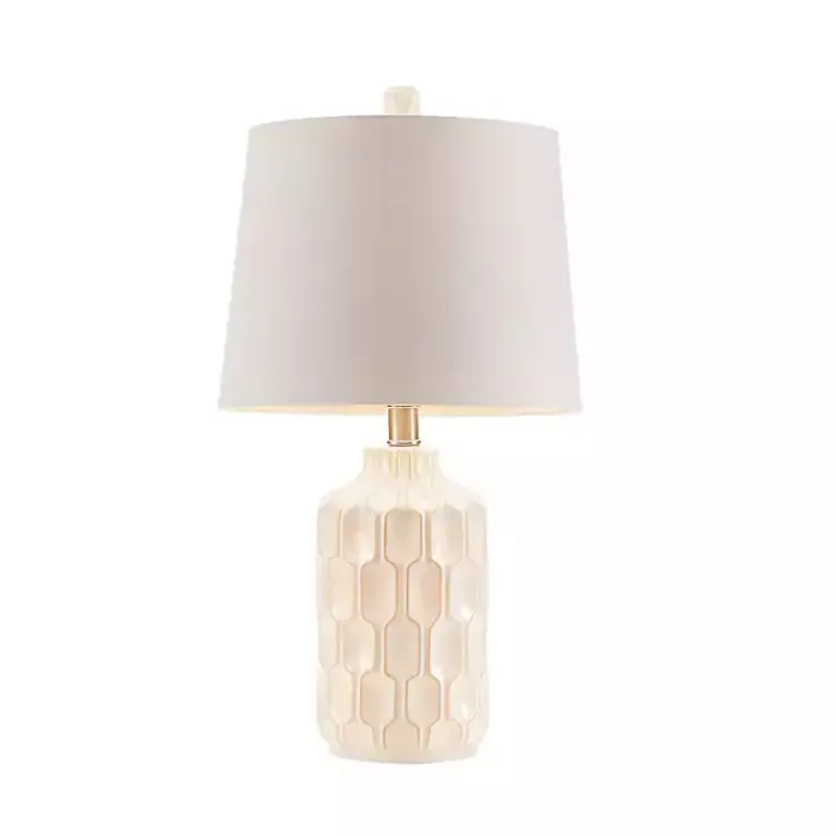 This Ivory Contour Ceramic Table Lamp brings elegance and dimension to any room! This table lamp features a contoured ivory ceramic base that repeats around the lamp to create depth, for a stunning mid-century modern look.