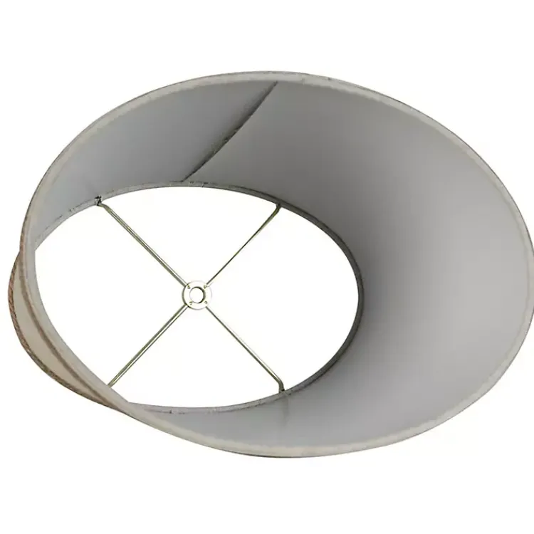 - Hardback tapered oval shade in an oatmeal linen color with brown rope borders