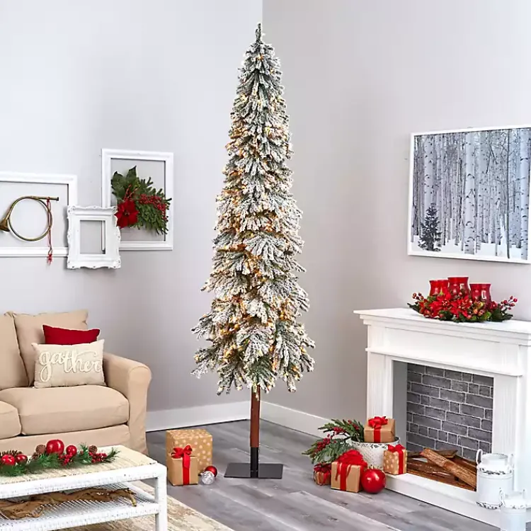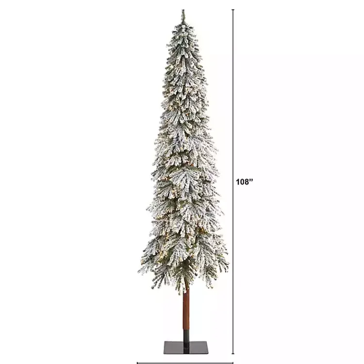 This 9 ft. Lit Flocked Grand Alpine Christmas Tree makes it easy to get into the holiday spirit with its snowy branches and woodsy design! Even Santa will love putting gifts under this evergreen.
