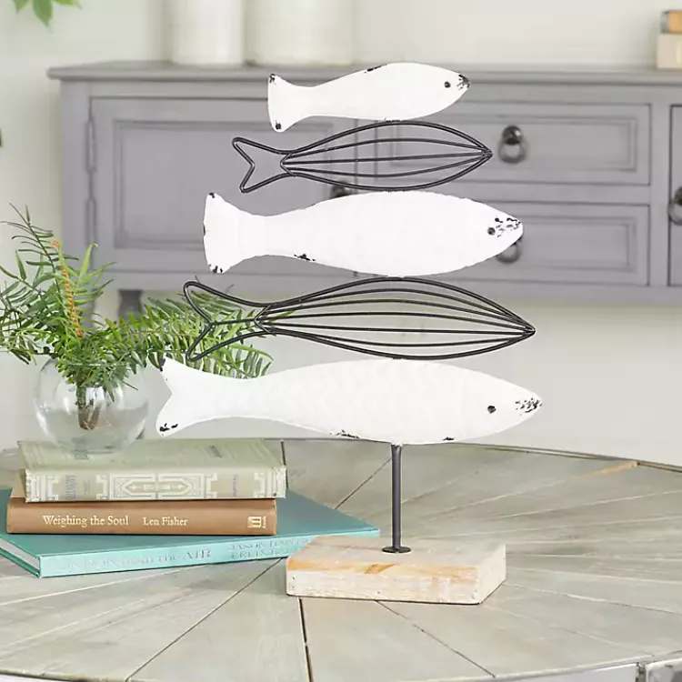 Shine a spotlight on your living space with this gorgeous statue. The Ivory Distressed Coastal Fish School Statue looks great in a tabletop display, or decorating a shelf.