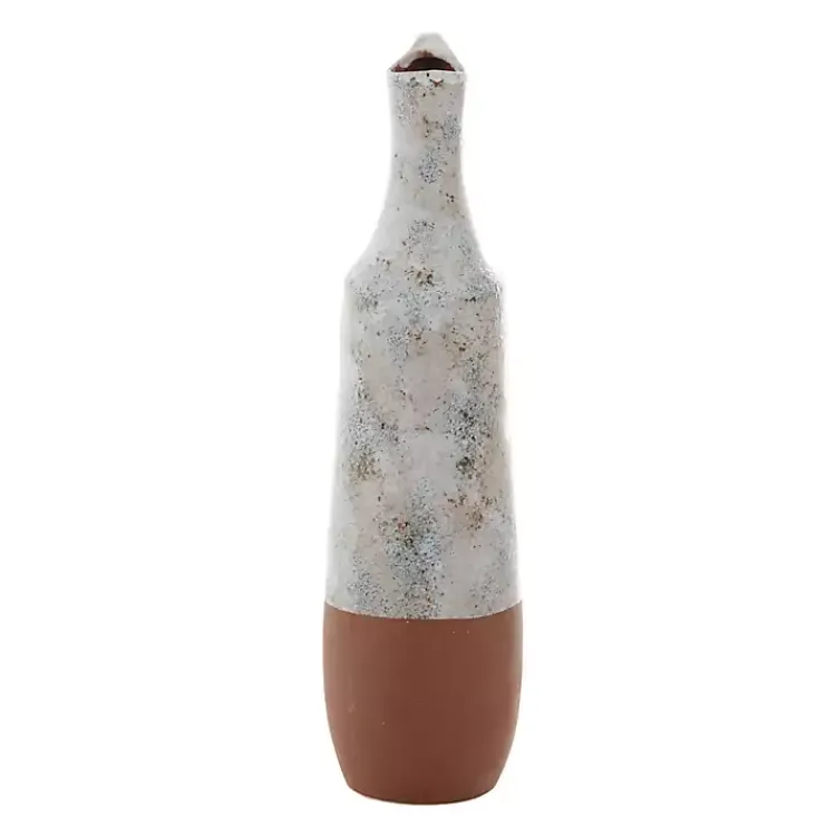 The White and Rust Brown Ceramic Vase complements any farmhouse home. The bubbled, marble-like glaze and exaggerated handle add a unique statement to any room.