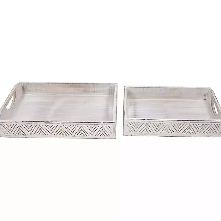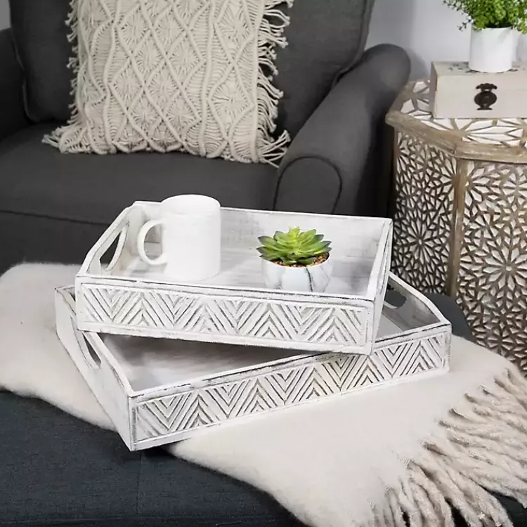 Keep your trinkets and accessories organized with the set of Brushed White Chevron Carved Trays. You’ll love how they lend rustic-boho charm to your home décor.