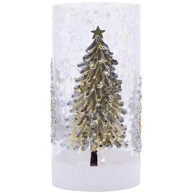 Add a soft, wintry glow to your console table or dinner table with our LED Gold Christmas Tree Vase! This vase has a crackled finish that adds a frozen look to the glass. The gold Christmas tree is perfect for a touch of elegance to your home!