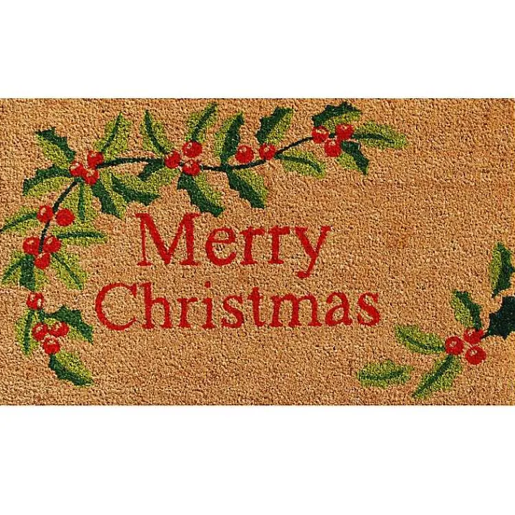 Greet your guests with some Christmas cheer with our Natural Merry Christmas Holly Coir Doormat. You’ll love the festive flair this mat adds to your space.