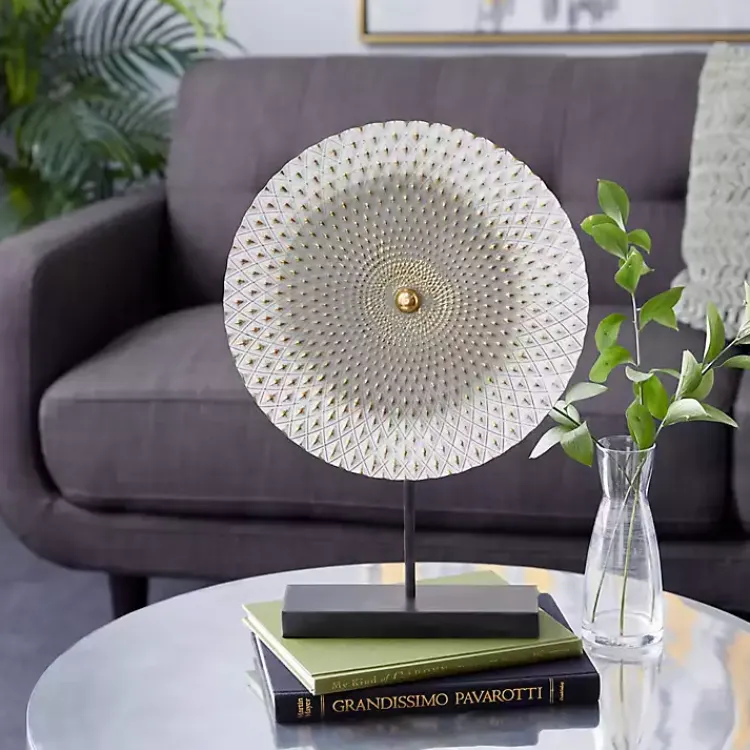 Bring something special to any spot in your space with our Gray White Gold Carved Mandala Metal Sculpture. You’ll love how this sculpture looks in your home.