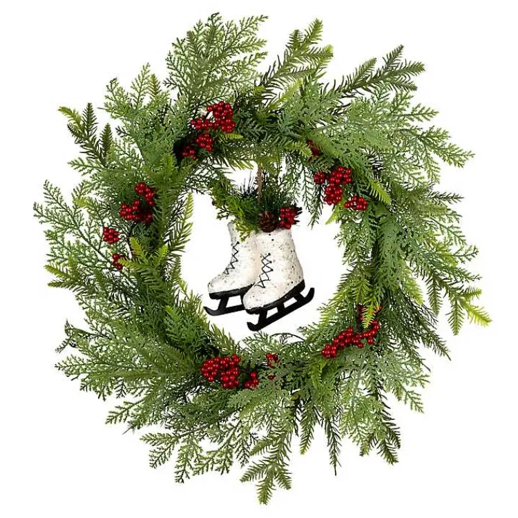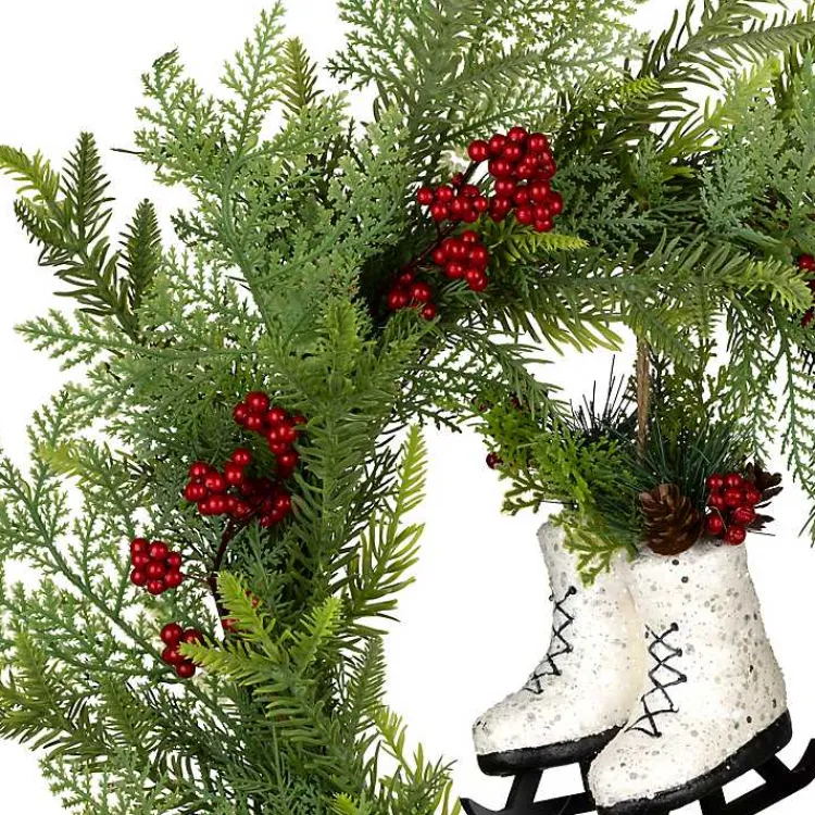 Create Christmas memories with this charming Winter Skates Christmas Wreath with Red Berries! This wreath is crafted with green branches and accented with red berries and white ice skates.
