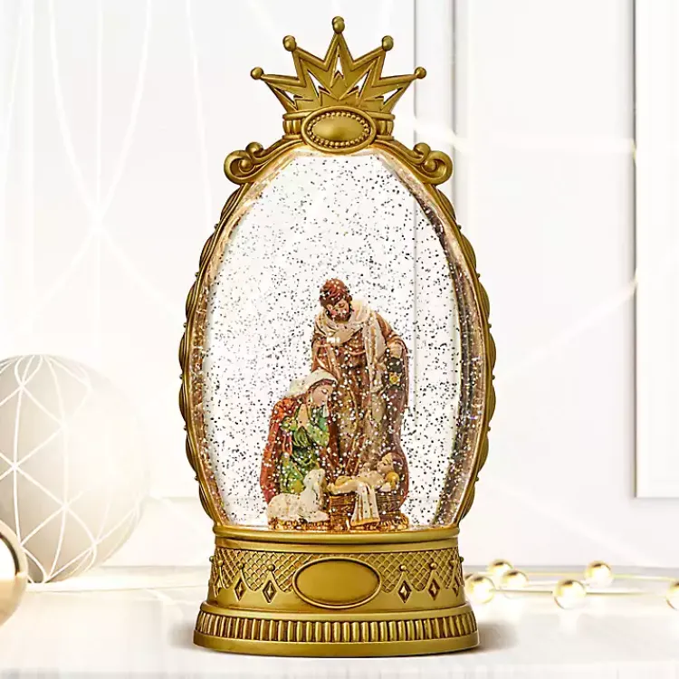 Nothing captures the magic of the holiday season like a snow globe! This Pre-Lit Golden Crown Holy Family Snow Globe depicts the nativity in such a beautiful way!