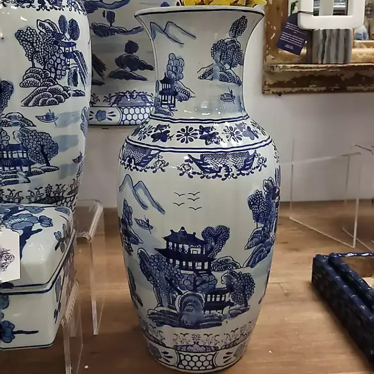 The Blue and White Ceramic Chinoiserie Vase will make an elegant presence amidst your home decor. Styled anywhere from a fireplace to a bookshelf, this beautiful jar adds the perfect pop of color!