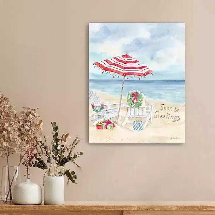 Take Christmas to the coast with this Holiday at the Cape Canvas Art Print. Its fun, beachy landscape will give you a reprieve from the chilly winter weather!