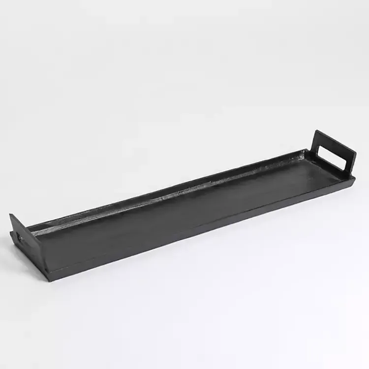 Complete your coffee table or countertop with this Long Black Metal Tray with Handles. Its chic, angular design beautifully displays candles, books, and other decor!