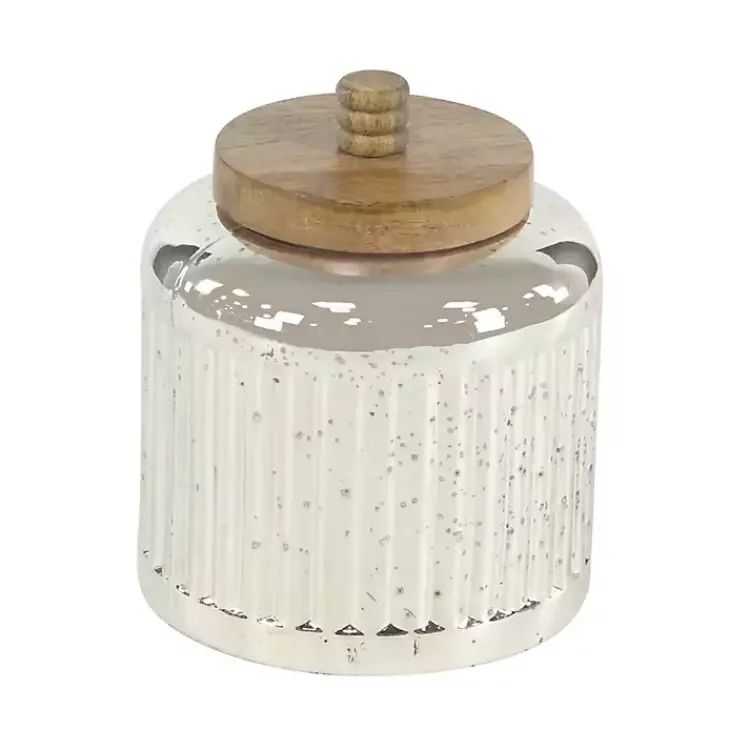 Organize your glam in style! Featuring a fabulously mirrored finish, our Silver Glass Jars with Wooden Lids are perfect for holding almost anything in a stylish way.